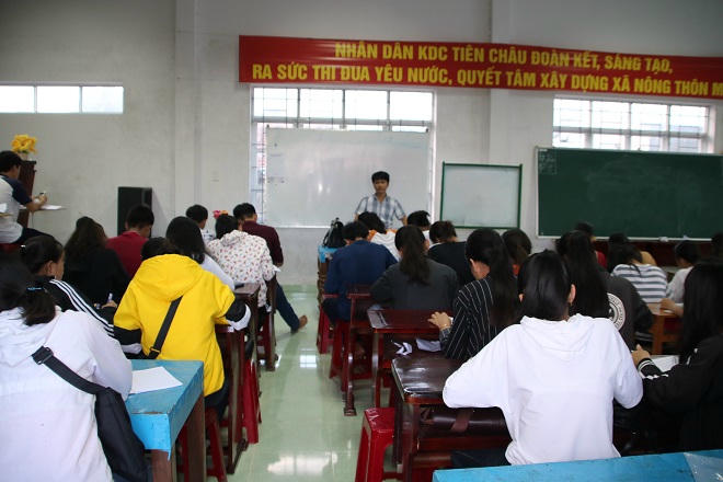 Bây giờ, có những ca dạy, học sinh lên đến trên 100 em nên anh phải giảng bằng micro qua hệ thống loa âm thanh với 4 loa lớn đặt ở 4 góc bên trong nhà văn hóa.