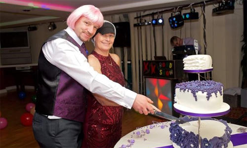 Cũng giống như mọi chú rể khác, anh Pete muốn mình trông bảnh bao nhất trong ngày cưới. Anh đã chọn bộ vest màu xanh đen cùng chiếc cà vạt tím trong lễ kết hôn với bạn đời 46 tuổi. Nhưng hôm đó, anh còn lựa thêm một phụ kiện khiến nhiều khách bất ngờ: Mái tóc giả màu hồng rực.