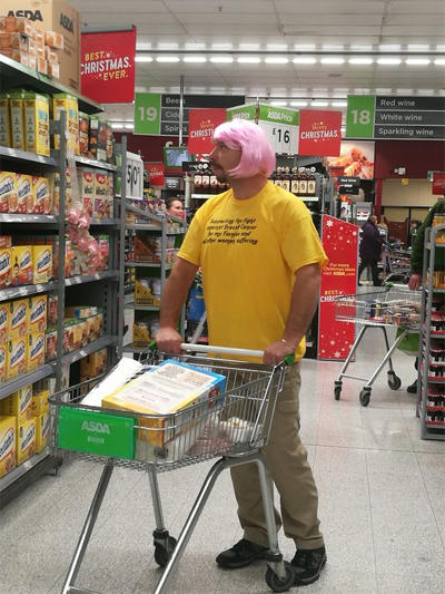 Theo Mirror, khi nhìn thấy bức hình tóc giả, một người bạn đề nghị trả 20 bảng cho anh Pete nếu anh đội mái tóc rực rỡ này. Anh Pete nảy ra ý tưởng kêu gọi mọi người quyên góp 100 bảng một tuần nếu anh đội tóc giả hàng ngày. Từ đó đến nay, anh đã quyên góp được 3.500 bảng dành tặng khoa Ung thư của Bệnh viện Yeovil.
