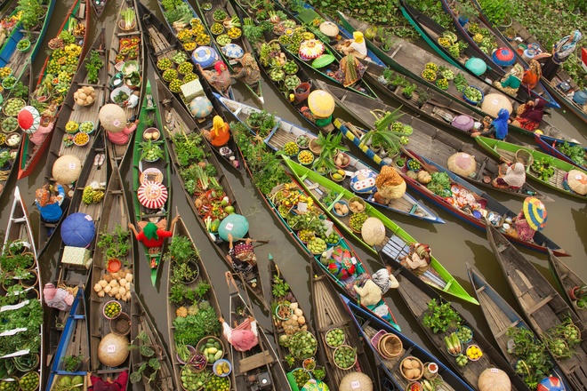 Cảnh mua bán tại một chợ nổi ở Malaysia đạt giải 3 thể loại du lịch. Của Antonius Andre Tjiu chụp.