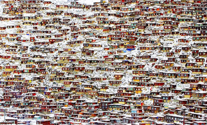 "Học viện Phật giáo Larung Gar" chụp tại Trung Quốc của Qungjun Rong là tác phẩm đạt giải danh dự thể loại ảnh Kiến trúc.