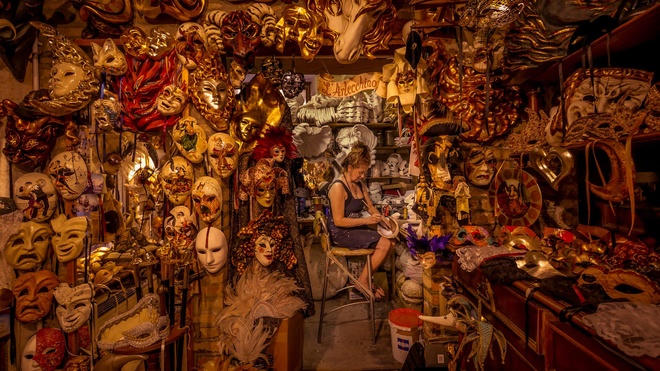 Tác giả chụp khoảnh khắc này trong cửa hàng làm mặt nạ của nghệ nhân Marilisa Dal Cason ở Venice, Italy. Bức ảnh đạt giải danh dự thể loại Con người và chân dung là bức ảnh "Quý bà mặt nạ" của Dean Saffron.