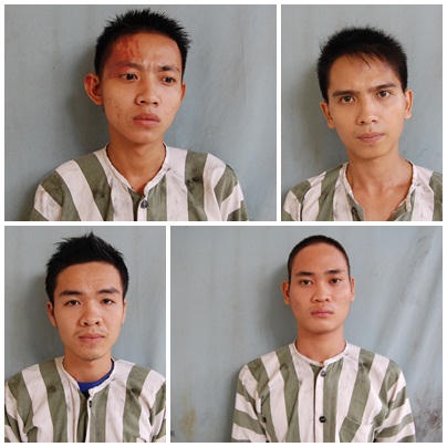 Từ thông tin này, sau gần 2 tiếng truy tìm, trinh sát đã triệu tập 5 nghi phạm gồm Phan Minh Sơn (tự Bầu, SN 1993), Cao Hữu Tiến, Cao Xuân Duy, Lê Trương Nhân (cùng sinh năm 1994, quê Phú Yên), và Thuật khi các đối tượng đang ẩn náu tại một phòng trọ ở phường Lái Thiêu. Chúng khai nhận chính là những đối tượng gây án.
