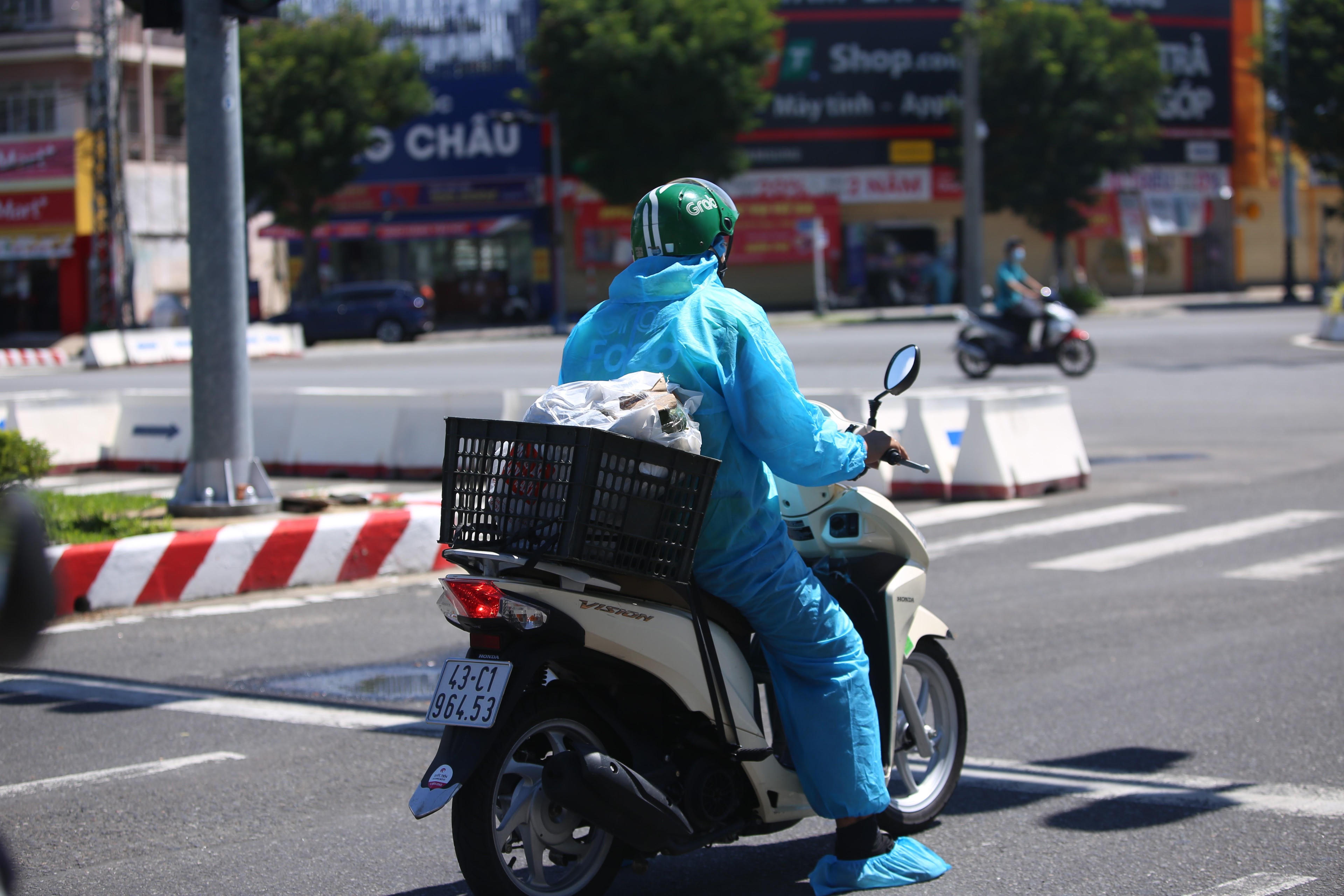 Lượng người ra đường nhiều nhất trong hôm nay vẫn là các shipper. Theo quy định, tất cả các shipper phải mặc đồ bảo hộ trong suốt quá trình giao hàng. |