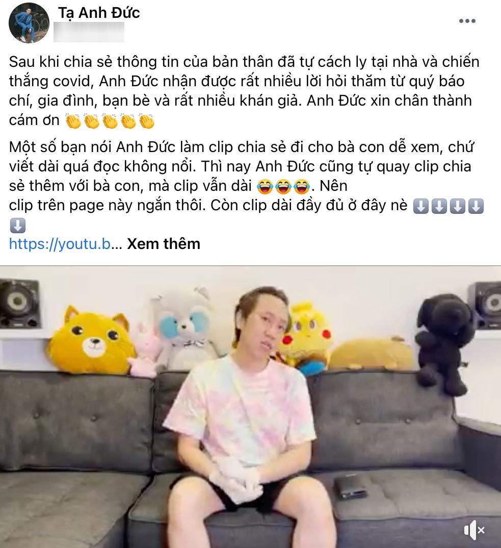 Anh Đức làm clip chia sẻ chi tiết kinh nghiệm chiến thắng Covid-19. (Ảnh: Chụp màn hình) |