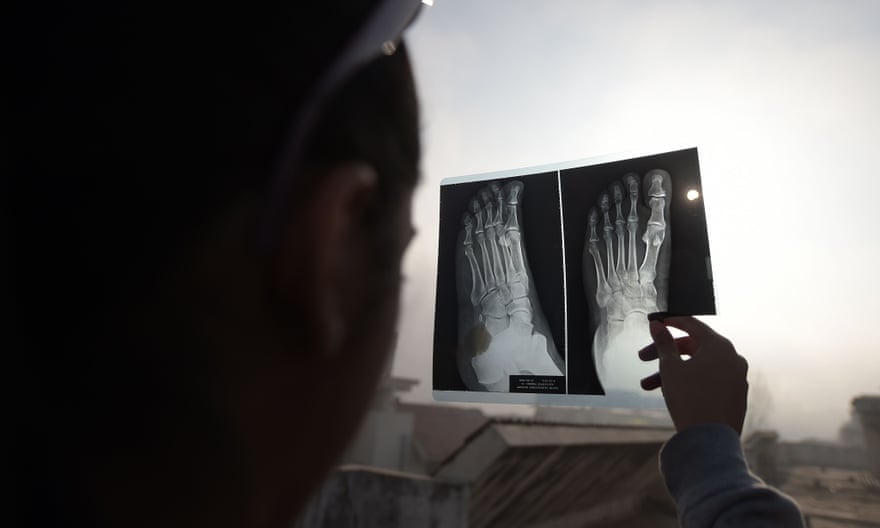 Một cô gái xem nhật thực qua tấm phim chụp X quang khi mặt trăng che khuất mặt trời ở Islamaba