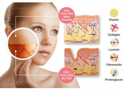 Khoa học về sinh học phân tử đã phát hiện bí mật của làn da khỏe đẹp chính là cấu trúc nền của da (Extracellular Matrix), bao gồm các protein dạng sợi (elastin, collagen, laminin, fibronectin) và những phân tử giữ nước proteoglycan. Cấu trúc này nằm ở lớp bì và rất quan trọng bởi các thành phần trong đó gắn kết tạo thành bộ khung để nâng đỡ, giúp da đàn hồi, săn chắc, giữ ẩm, mau lành vết thương…