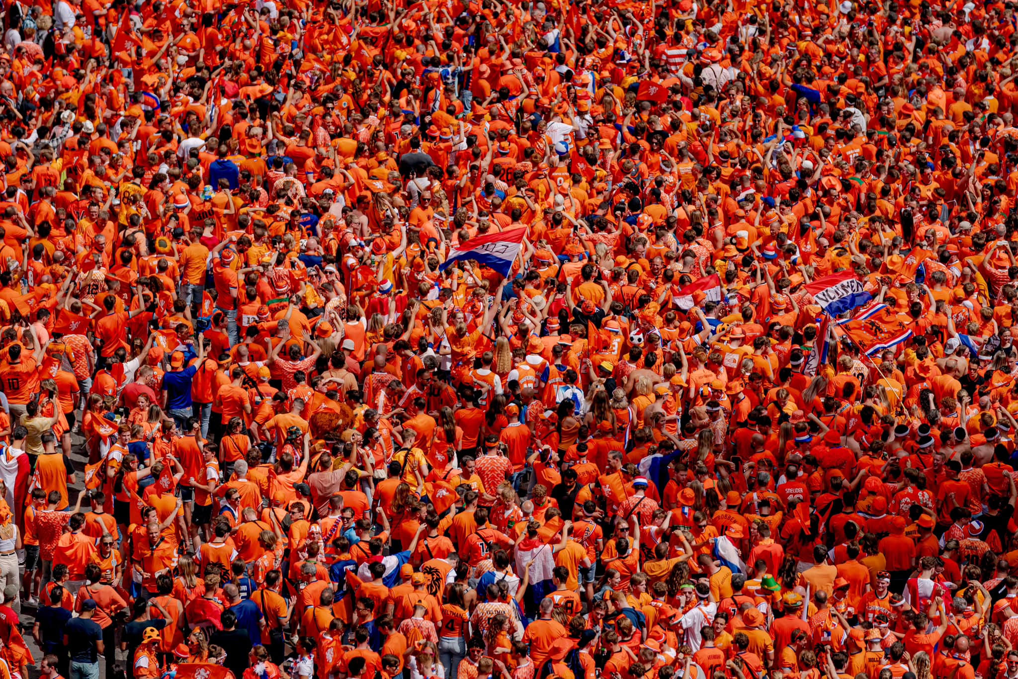 Phút 30, Simons đá phạt góc bên phải, cho Dumfries bật cao đánh đầu căng nhưng bóng trúng mép trên xà ngang.