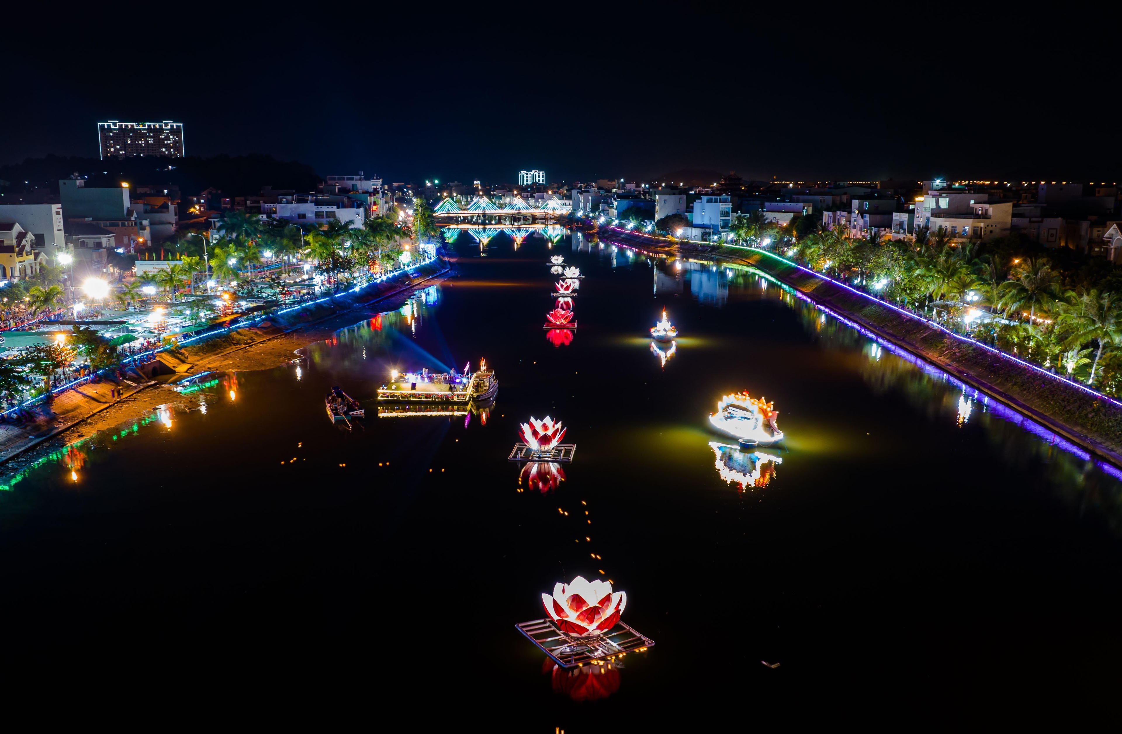| Trình diễn thuyền hoa du lịch, thả hoa đăng và hát trên sông Hà Thanh (ảnh: Dũng Nhân). |