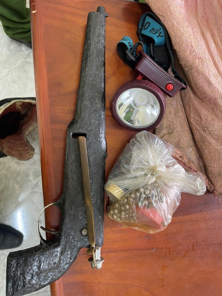 Súng tự chế dùng để gây án của đối tượng A Dô. (Ảnh Công an tỉnh Kon Tum) |