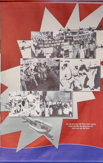 Áo dài phụ nữ Việt Nam hiên ngang trước sự đàn áp bằng bạo lực của cảnh sát Sài Gòn. (Ảnh trong bài: Ảnh tư liệu tại Bảo tàng Hà Nội) |