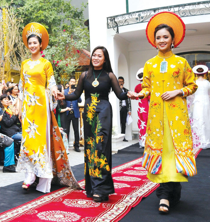 Nhưng “Không gian Áo dài Việt” không đi sâu vào vấn đề học thuật mà mang đến cho du khách cái nhìn tổng thể về tà áo truyền thống của người phụ nữ Việt, với toàn bộ nguyên liệu là hàng thủ công sản xuất trong nước. Ở đây, các “thượng đế” sẽ được chiêm ngưỡng những bàn tay khéo léo của người nghệ nhân, thợ giỏi thêu từng nét hoa văn, khâu từng vành nón, kéo từng sợi tơ, để dệt khăn, vải lụa. Cùng với đó là quy trình sản xuất khép kín, từ khâu ý tưởng, thiết kế, sản xuất, xưởng may, xưởng thêu, các cửa hàng giới thiệu, bán áo dài và phụ kiện kèm theo như: Nón lá, trang sức, hài, guốc gỗ…