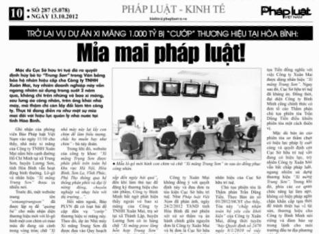 Dù bản án của phiên tòa sơ thẩm chưa có hiệu lực pháp lý cuối cùng, tuy nhiên Công ty Xuân Mai vẫn bất chấp pháp luật, ngang nhiên sử dụng thương hiệu “Xi măng Trung Sơn”. Trong khi đó, phía các cơ quan chức năng lại làm ngơ, không có biện pháp ngăn chặn khẩn cấp tạm thời để tránh thiệt hại về tài sản, thương hiệu cho Công ty Bình Minh nói riêng và đảm bảo sự trong lành cho môi trường đầu tư địa phương nói chung.