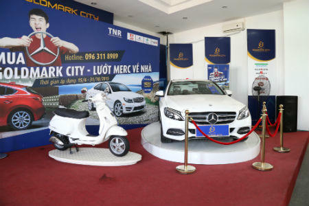 Từ ngày 15/06/2015 – 31/10/2015 chủ đầu tư dành tặng những khách hàng đặt mua thành công căn hộ Goldmark City chương trình “Mua Goldmark City – lướt Mercedes về nhà” với tổng giá phần quà lên tới 2,4 tỷ đồng gồm: Ô tô Mercedes C200, ô tô Mazda 2 số tự động, Xe Piaggio LX 125… cùng hàng loạt phần quà hấp dẫn khác.