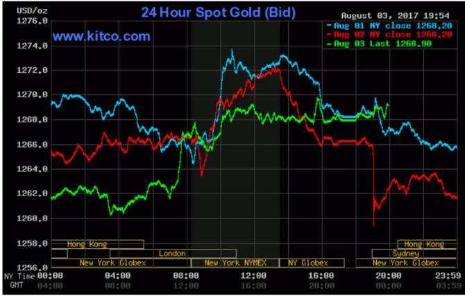 Ở thời điểm cập nhật lúc 7h00 sáng theo giờ Việt Nam, giá vàng giao ngay đang ở mức 1.268,90 USD/ounce. Chỉ số ICE U.S. Dollar, so sánh đồng bạc xanh với 6 đồng tiền mạnh khác, vẫn chưa thoát đáy 15 tháng dù tăng gần 0,1% lên 92,85 điểm.