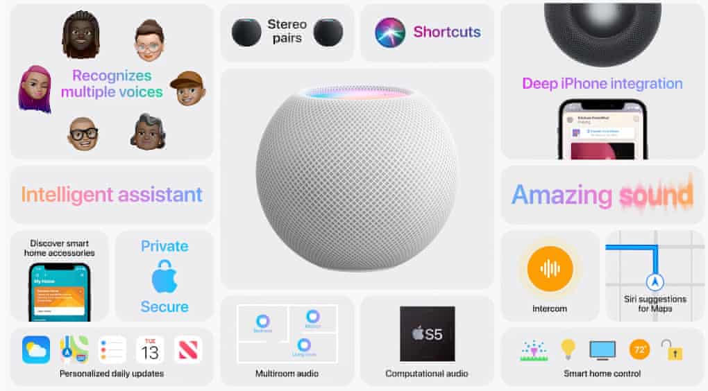 Ngoài điện thoại, Apple cũng giới thiệu đến các tín đồ công nghệ loa thông minh thế hệ mới có tên HomePot Mini cho phép người dùng có thể sử dụng thiết bị để điều khiển các thiết bị thông minh trong nhà như đèn, tivi... Người dùng cũng có thể phát trực tuyến nhạc từ danh sách phát có sẵn, nhận thông tin thời tiết, tin tức, tỷ số thể thao mới nhất qua Siri hay Alexa chỉ bằng một chiêc loa nhỏ gọn. HomePot Mini có giá 99 USD cho hai phiên bản màu đen và trắng.