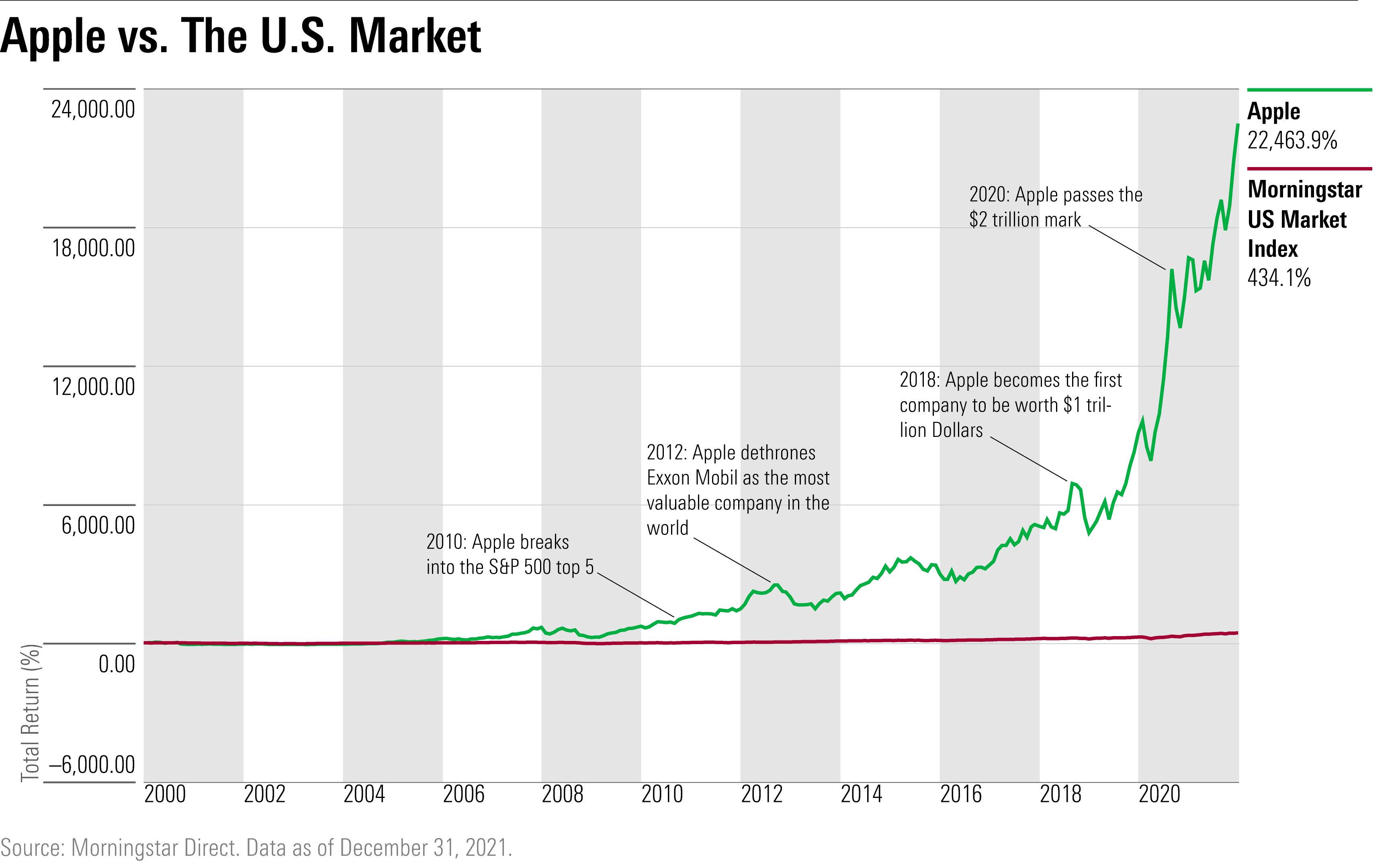 Biểu đồ phát triển giá trị của Apple trong 10 năm qua. Ảnh: MorningStar