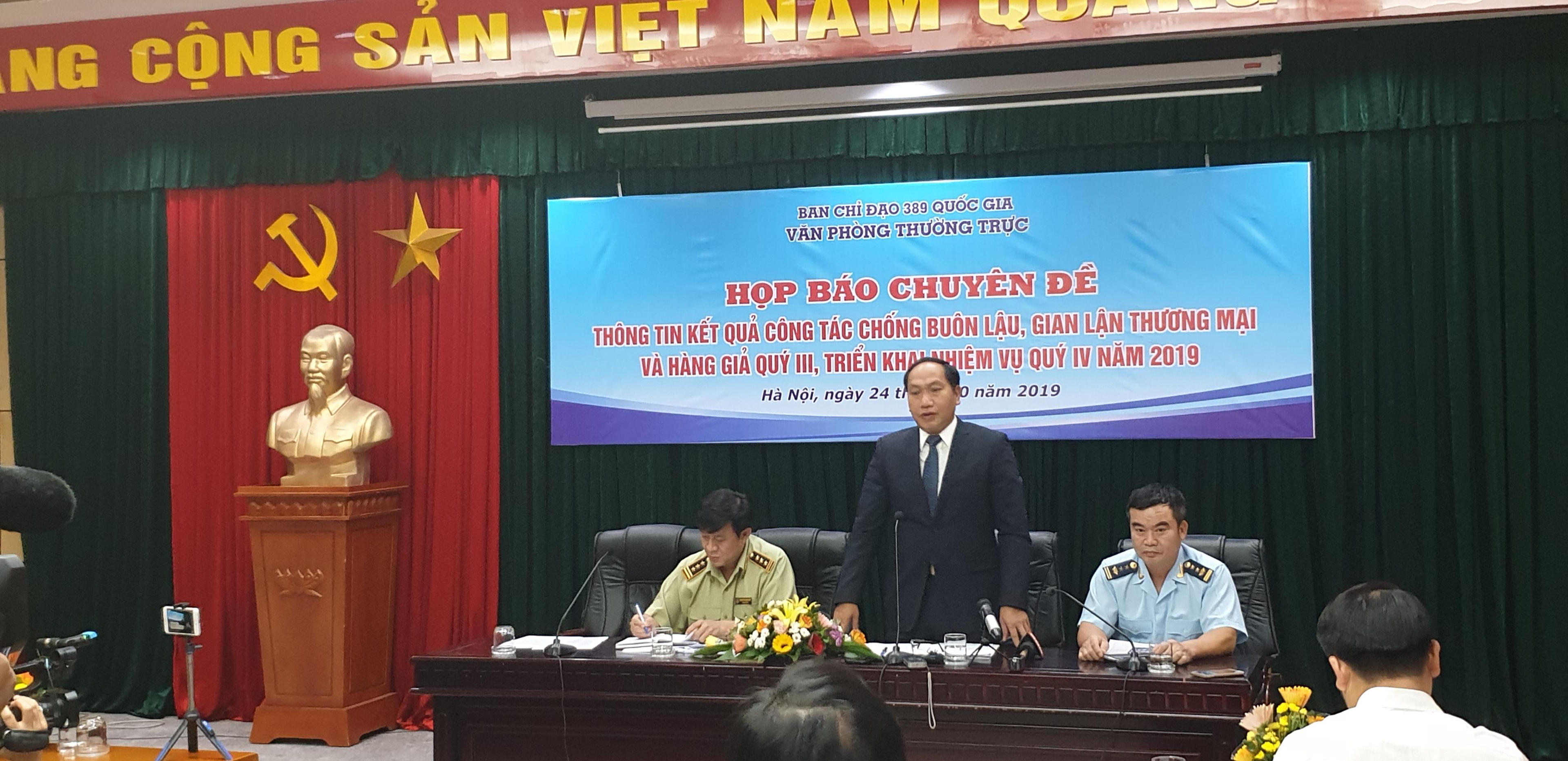 (PLVN) -Chiều 24-10, Văn phòng Ban chỉ đạo 389 quốc gia tổ chức họp báo chuyên đề thông tin kết quả công tác chống buôn lậu, gian lận thương mại và hàng giả 9 tháng đầu năm 2019.