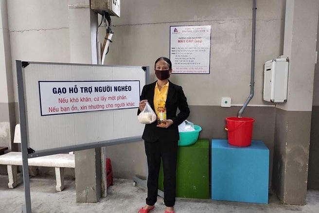 Về cơ chế hoạt động, mỗi lần bấm nút thì cây ATM này sẽ cho ra tầm 2kg gạo, bên cạnh sẽ có bàn hỗ trợ để nước mắm và dầu ăn cho những ai thật sự cần. Cho nên, những người đến nhận gạo đa phần là những người lao động chân tay, làm nghề đạp xích lô, bán vé số, lượm ve chai,…