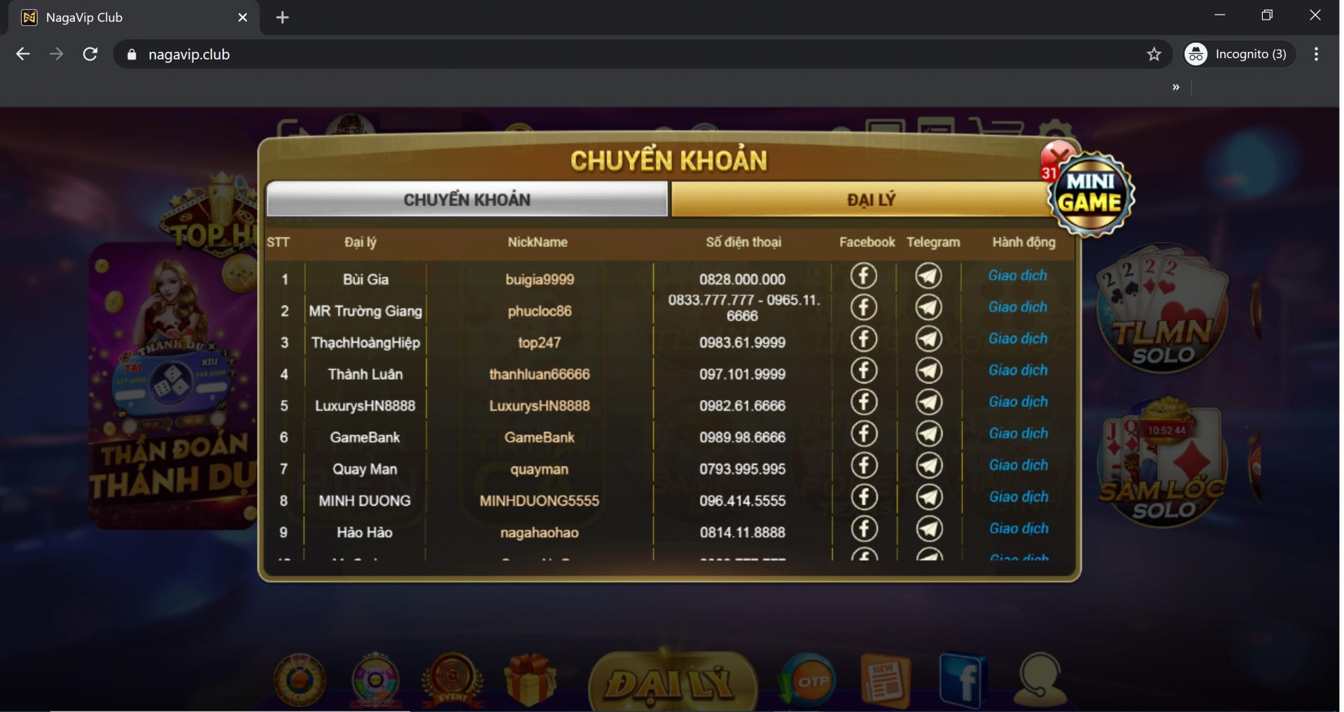 Thêm một vấn đề khiến dư luận phải băn khoăn. Đấy là việc những đường dây này đang hoạt động ngang nhiên, công khai. B29.club, Nagavip.club... đều vô tư chưng ra số điện thoại đường dây nóng, địa chỉ fanpage hỗ trợ, cổng chat trực tuyến ngay trên trang chủ. Bên cạnh đó, danh sách các đại lý cũng được đăng tải hoàn toàn công khai.
