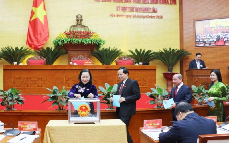 | Các đại biểu bỏ phiếu bầu chức danh Chủ tịch HĐND tỉnh Hòa Bình, nhiệm kỳ 2021 -2026. |