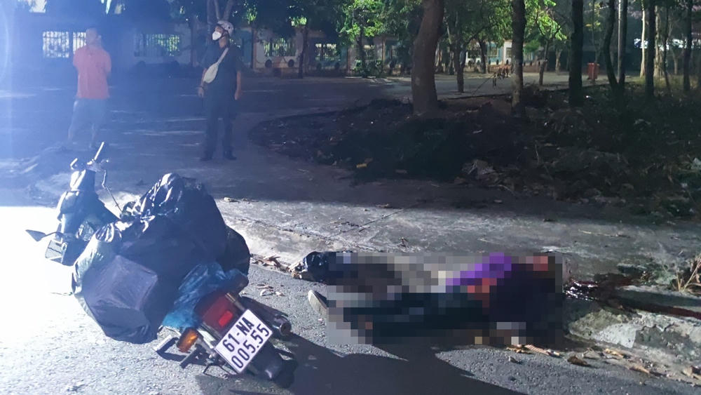 Một người dân địa phương đi tập thể dục đã phát hiện thi thể bà M. trên vỉa hè, đầu còn đội mũ bảo hiểm và bên cạnh có chiếc loa đang phát kinh Phật.