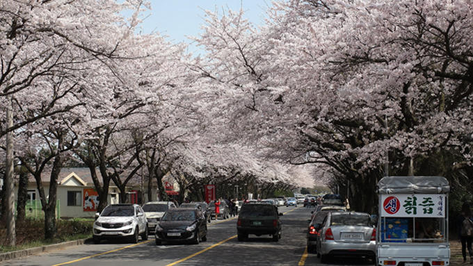 Đường hoa anh đào đẹp trên đảo Jeju.