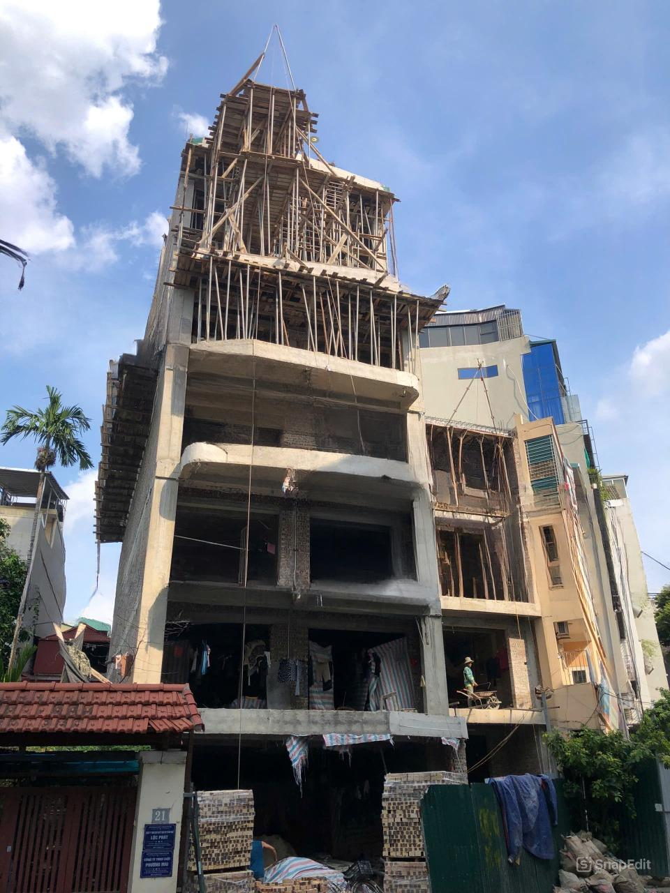 Công trình số 21 ngõ 75/14 Hoàng Hoa Thám được đầu tư với quy mô lên tới khoảng 7 tầng và tiếp tục đổ trụ xây dựng thêm |