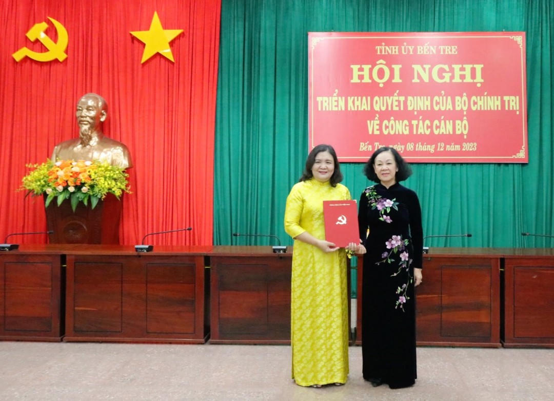 Phát biểu chỉ đạo hội nghị, bà Trương Thị Mai - Trưởng Ban Tổ chức Trung ương cho biết, để bảo đảm sự lãnh đạo trực tiếp, toàn diện, thường xuyên, liên tục của Bộ Chính trị, Ban Bí thư và Trung ương Đảng đối với Tỉnh ủy Bến Tre, Bộ Chính trị đã đánh giá nhiều chiều, lắng nghe tâm tư, nguyện vọng của Ban Thường vụ Tỉnh ủy và thống nhất quyết định giao đồng chí Hồ Thị Hoàng Yến - Phó Bí thư Thường trực Tỉnh ủy giữ chức vụ Quyền Bí thư Tỉnh ủy Bến Tre đến khi kiện toàn chức danh Bí thư Tỉnh ủy nhiệm kỳ 2020 - 2025.
