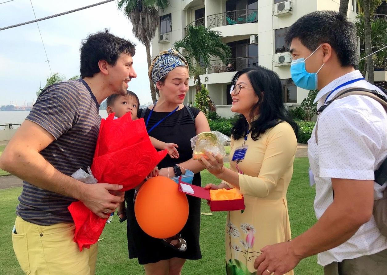 Bà Phượng (thứ hai từ phải sang) trong một buổi lễ giao nhận con nuôi. |