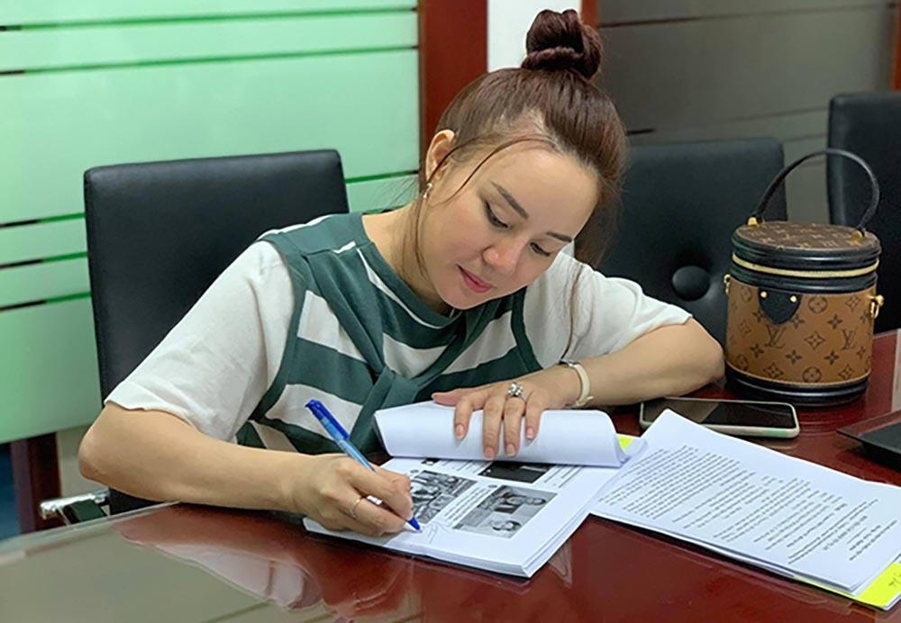 | Ca sỹ Vy Oanh trong một lần làm việc với cơ quan chức năng. Ảnh: FB Nhân vật |