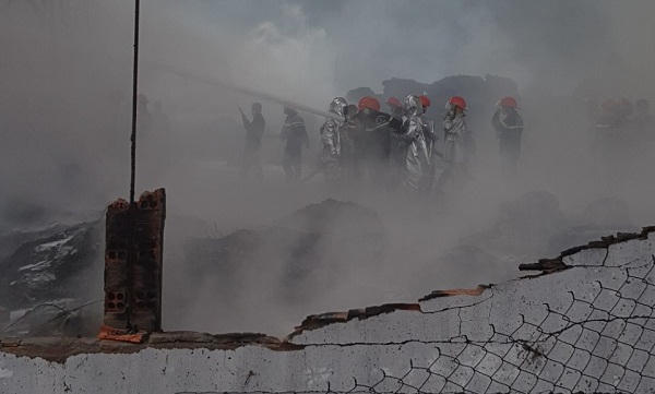 Lửa bùng lên từ 9h30 sau đó lan sang một nhà kho cạnh đó (nhà kho này được một công ty liên doanh của Trung Quốc và Việt Nam thuê để tập kết bao bì, ni lon, lưới đánh bắt cá…), vì nhà kho chứa toàn vật liệu dễ bắt lửa nên đám cháy đã bùng phát lớn hơn lửa bén vào lúc 10h20 làm sập một trụ điện cao thế.