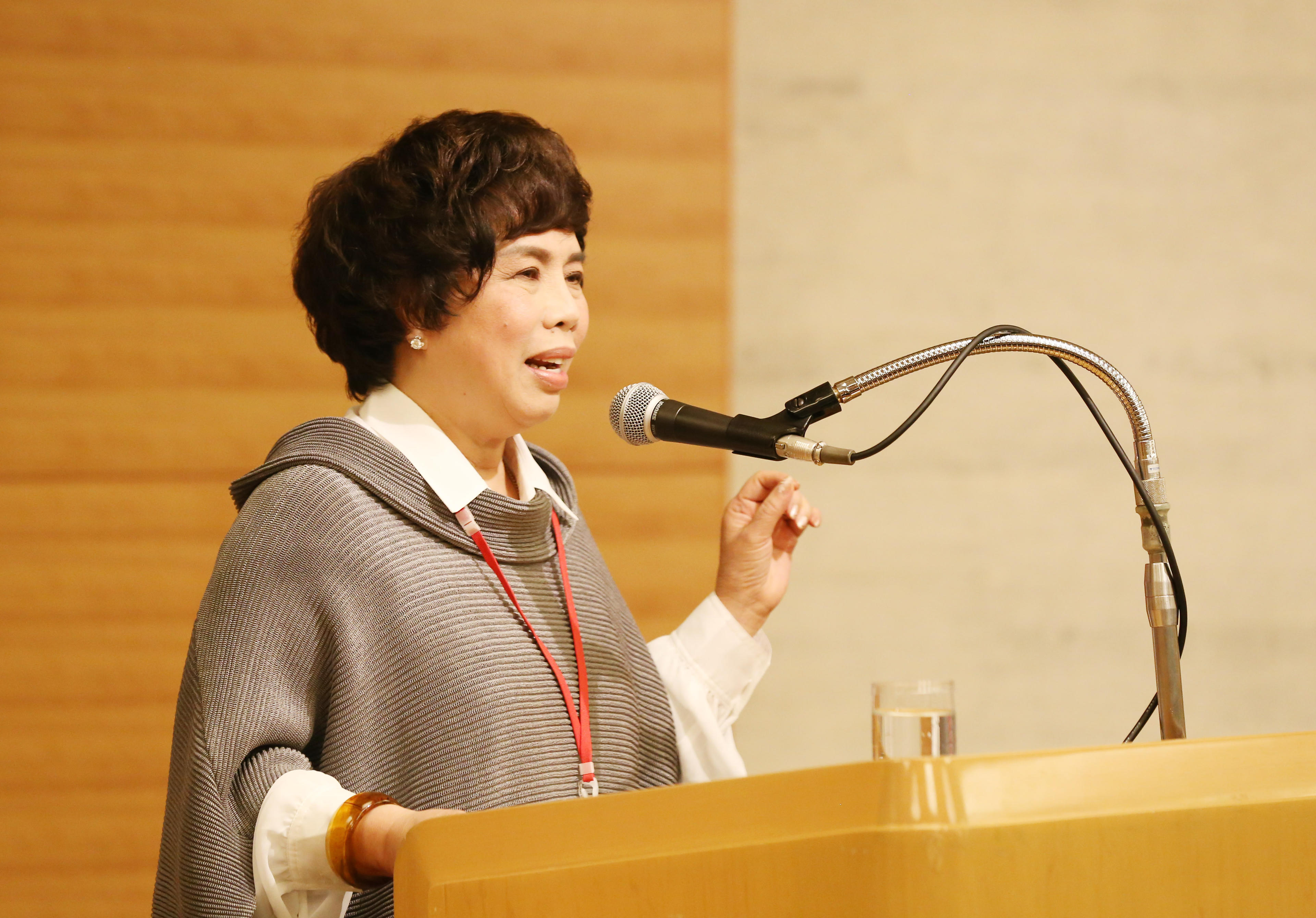 | Thủ tướng Nhật Bản Shinzo Abe phát biểu tại Hội nghị. Phó Chủ tịch Đặng Thị Ngọc Thịnh (ngồi vị trí thứ 3 từ trái qua trên đoàn chủ tịch) dẫn đầu đoàn Việt Nam, cũng có bài phát biểu tại Lễ khai mạc. |