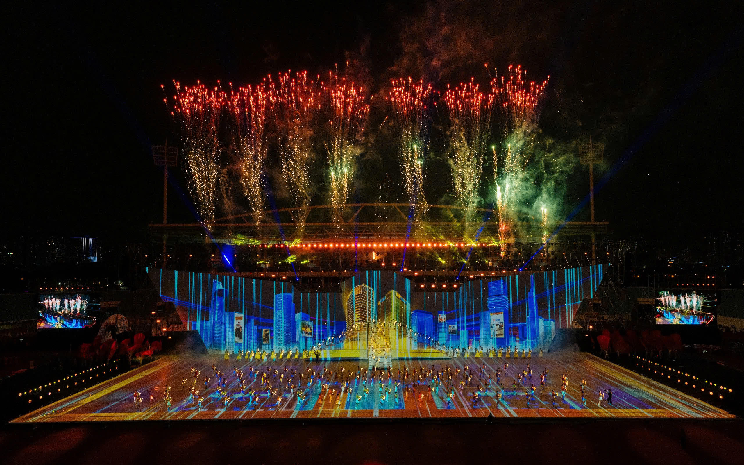 Trên diện tích khổng lồ hơn 6.000m2, công nghệ mapping tiên tiến phủ trọn mặt sàn biến không gian sân vận động Mỹ Đình thành một sân khấu sống động chưa từng có, đây cũng là nơi các hoạt động nghệ thuật, triển lãm và diễu hành diễn ra đầy ấn tượng.