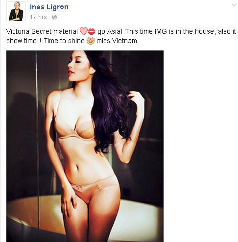 Liên tục đăng tải thông tin và hình ảnh của hoa hậu Phạm Hương tại cuộc thi Hoa hậu Thế năm 2015 rồi dành cho cô những lời khen ngợi, chuyên gia thời trang nổi tiếng người Pháp - Inès Ligron dự đoán đại diện Việt Nam sẽ làm nên chuyện tại cuộc thi năm nay.
