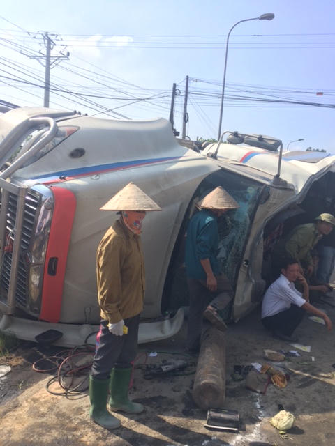 2 người tử vong là tài xế xe tải và một người bán rau đi ngang qua đó. Vụ va chạm mạnh đên mức xe tải bị hất bay xuống ruộng, đầu xe biến dạng hoàn toàn. Xe Container lật và ca pô bay sang làn đường đối diện.