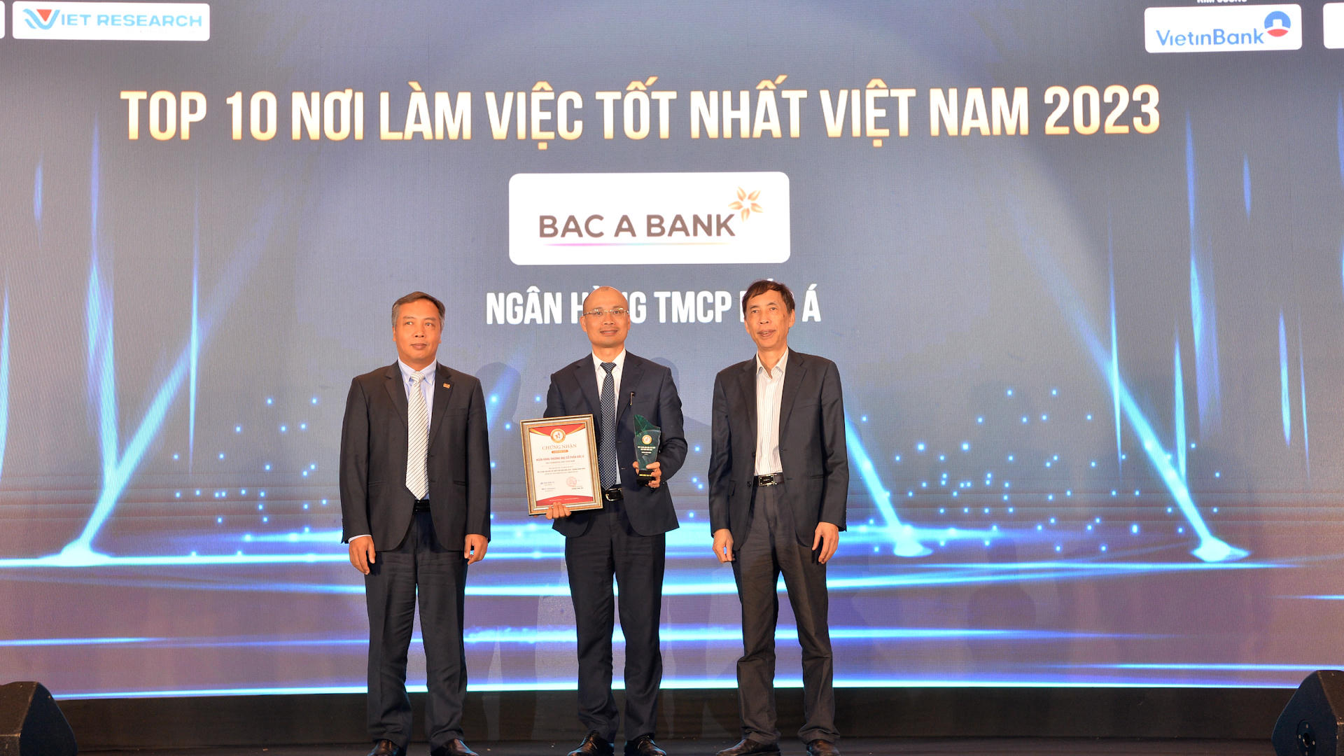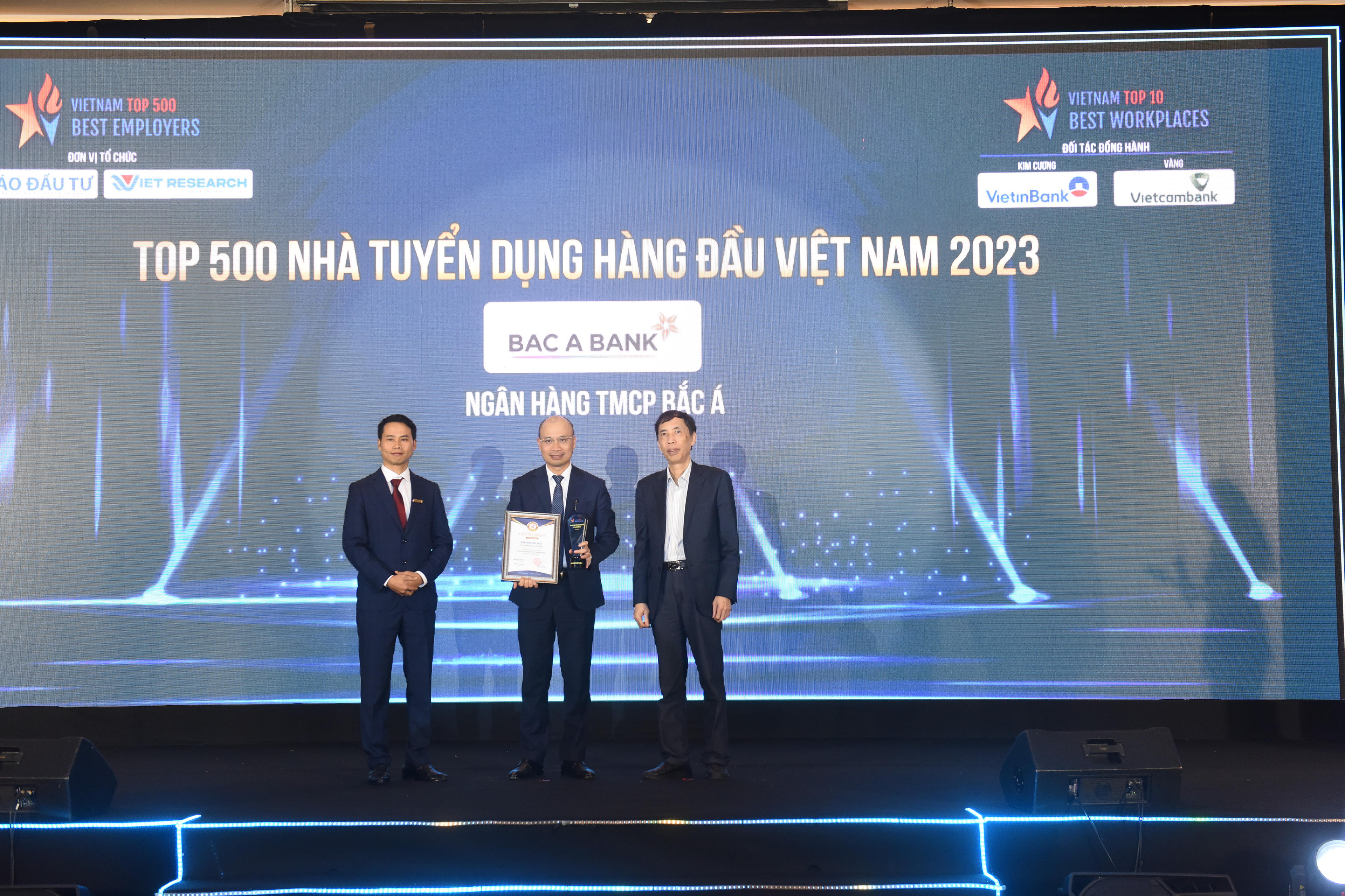 “Top 10 Nơi làm việc tốt nhất Việt Nam” (VBW10) và “Top 500 Nhà tuyển dụng hàng đầu Việt Nam” (VBE500) năm 2023 là Bảng xếp hạng uy tín do Báo Đầu tư phối hợp với Công ty cổ phần Nghiên cứu Kinh doanh Việt Nam tổ chức với sự tham gia của nhiều chuyên gia quản trị nhân sự hàng đầu trên cả nước. Trải qua nhiều vòng đánh giá khắt khe, BAC A BANK đã xuất sắc dành được các vị trí khá cao trong Bảng xếp hạng này.