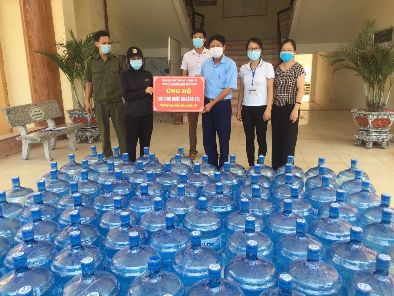 Hội chữ thập đỏ - Chùa Vẽ, Công ty khoáng sản Bắc Giang ủng hộ 100 bình nước khoáng 20l, chung tay đẩy lùi Covid-19. |