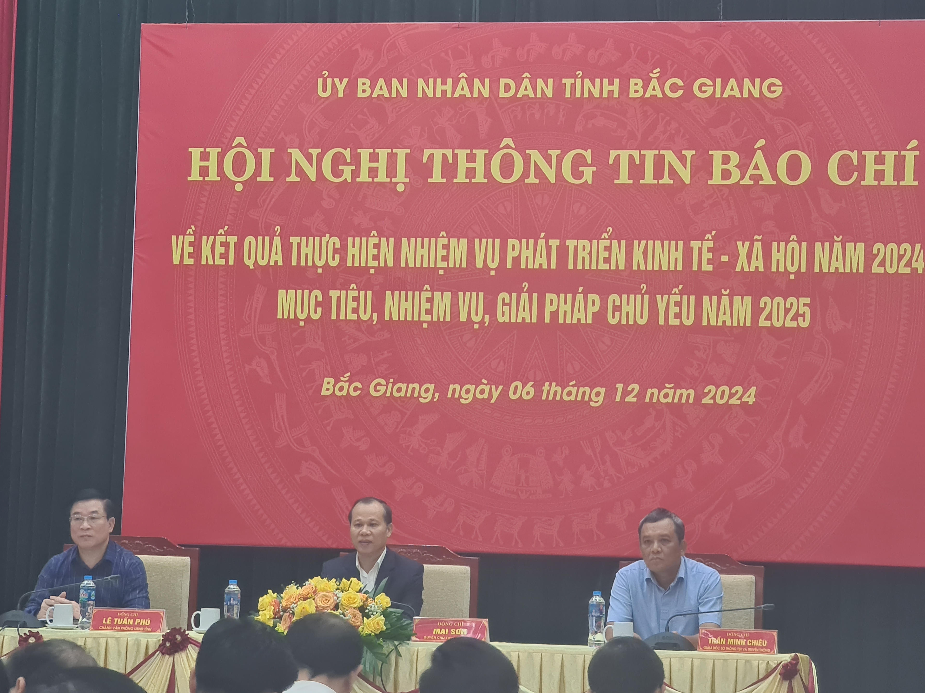 Báo cáo tại Hội nghị Thông tin báo chí về kết quả thực hiện kinh tế - xã hội năm 2024 được tổ chức sáng nay (6/12), ông Lê Tuấn Phú – Chánh văn phòng UBND tỉnh Bắc Giang cho biết, trong điều kiện có nhiều khó khăn, thách thức song tình hình kinh tế của tỉnh Bắc Giang trong năm nay tiếp tục phục hồi, phát triển mạnh mẽ.