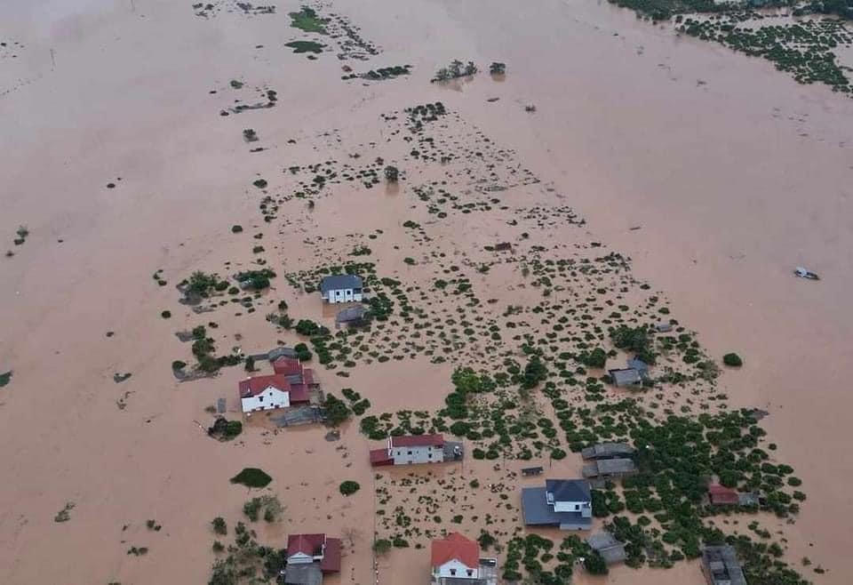 Nhiều ngôi nhà, cánh đồng, vườn cây bị ngập trong nước lũ |