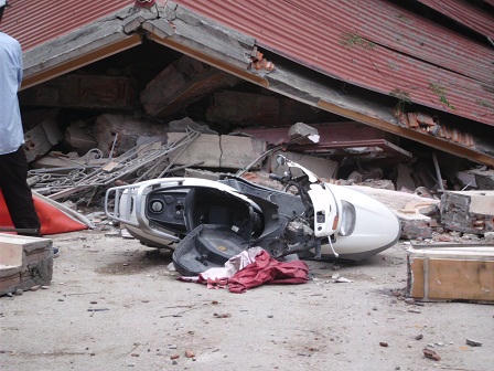 (PLO) - Sau khi có tiếng "rắc rắc" phát ra, căn nhà ba tầng đã đổ ụp xuống trước sự kinh hoàng của nhiều người, rất may đã không có thiệt hại nào về người.