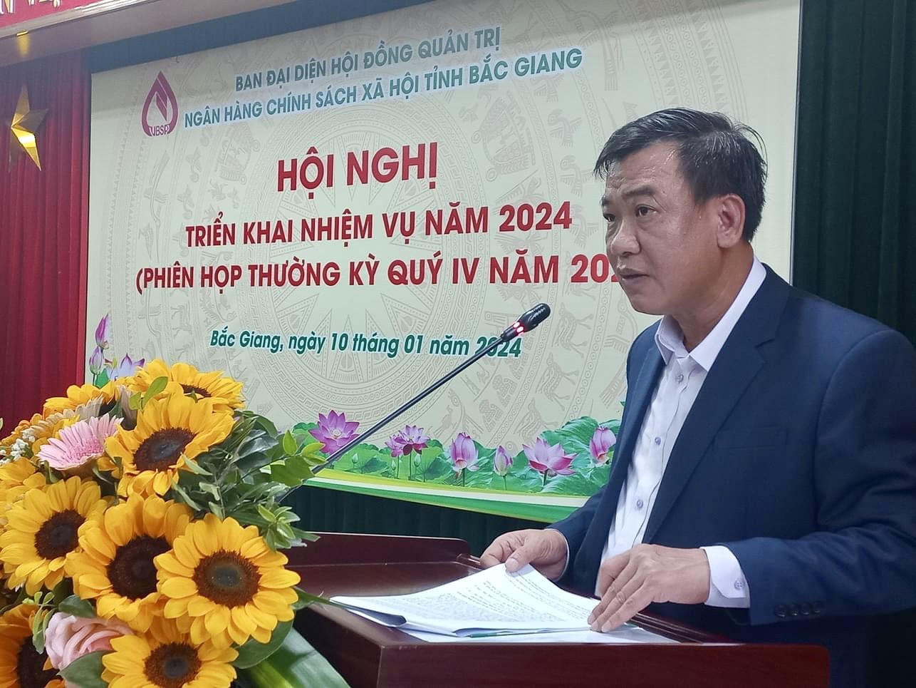 Ông Hà Quốc Quân , Giám đốc Chi nhánh NHCSXH tỉnh Bắc Giang phát biểu tại Hội nghị triển khai nhiệm vụ năm 2024. |