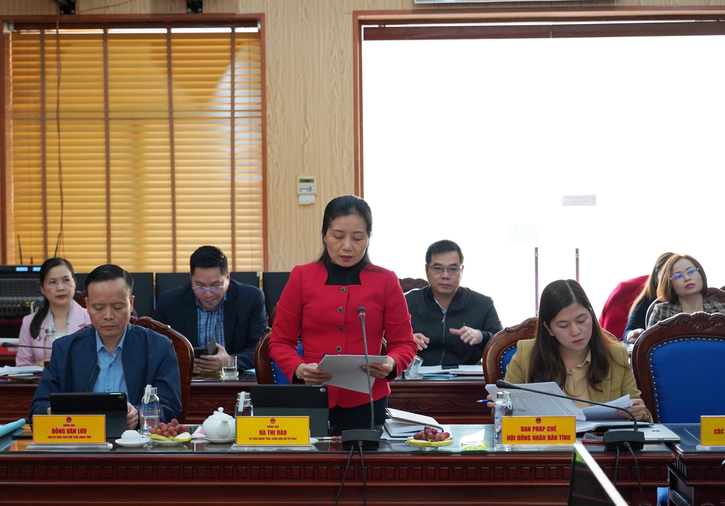 Ủy viên UBND tỉnh, Giám đốc Sở Tư pháp Hà Thị Đào báo cáo tại Buổi kiểm tra. |