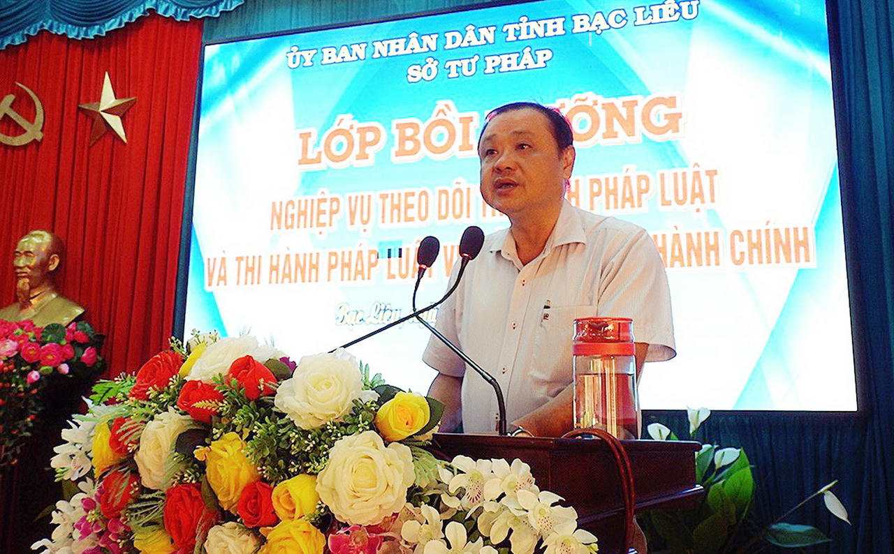 Phát biểu khai giảng lớp bồi dưỡng nghiệp vụ, đồng chí Vưu Nghị Bình - Giám đốc Sở Tư pháp tỉnh Bạc Liêu, cho rằng: Công tác thi hành pháp luật về xử lý vi phạm hành chính trong thời gian qua đã được lãnh đạo các cấp, của ngành trên địa bản tỉnh Bạc Liêu đặc biệt quan tâm chỉ đạo thực hiện, các cơ quan, người có thẩm quyền xử lý vi phạm hành chính thường xuyên tiến hành kiểm tra, thanh tra, xử lý các hành vị vị phạm thuộc phạm vi chức năng quản lý, góp phần đảm bảo trật tự xã hội, tăng cường kỷ cương, nâng cao hiệu lực, hiệu quả trong hoạt động quản lý nhà nước.