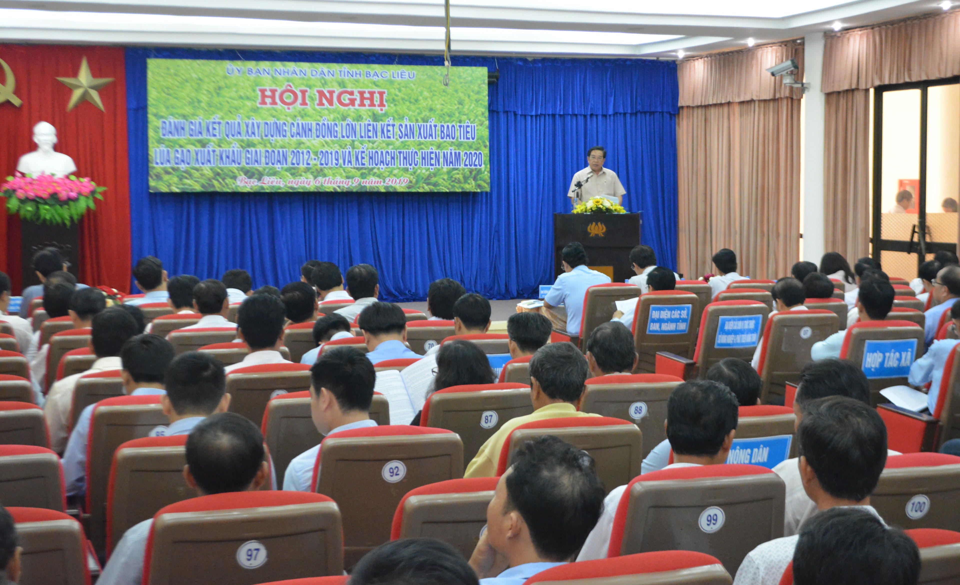 Theo báo cáo, từ năm 2012 - 2019, toàn tỉnh Bạc Liêu đã xây dựng được 26 cánh đồng lớn có doanh nghiệp bao tiêu sản phẩm, với diện tích gieo trồng 50.000 ha, sản xuất 2 - 3 vụ/năm. Việc xây dựng cánh đồng lớn LKSX bao tiêu lúa gạo xuất khẩu gắn với HTX, ô đê bao khép kín và sản xuất lúa giống bước đầu đạt được những kết quả tích cực.