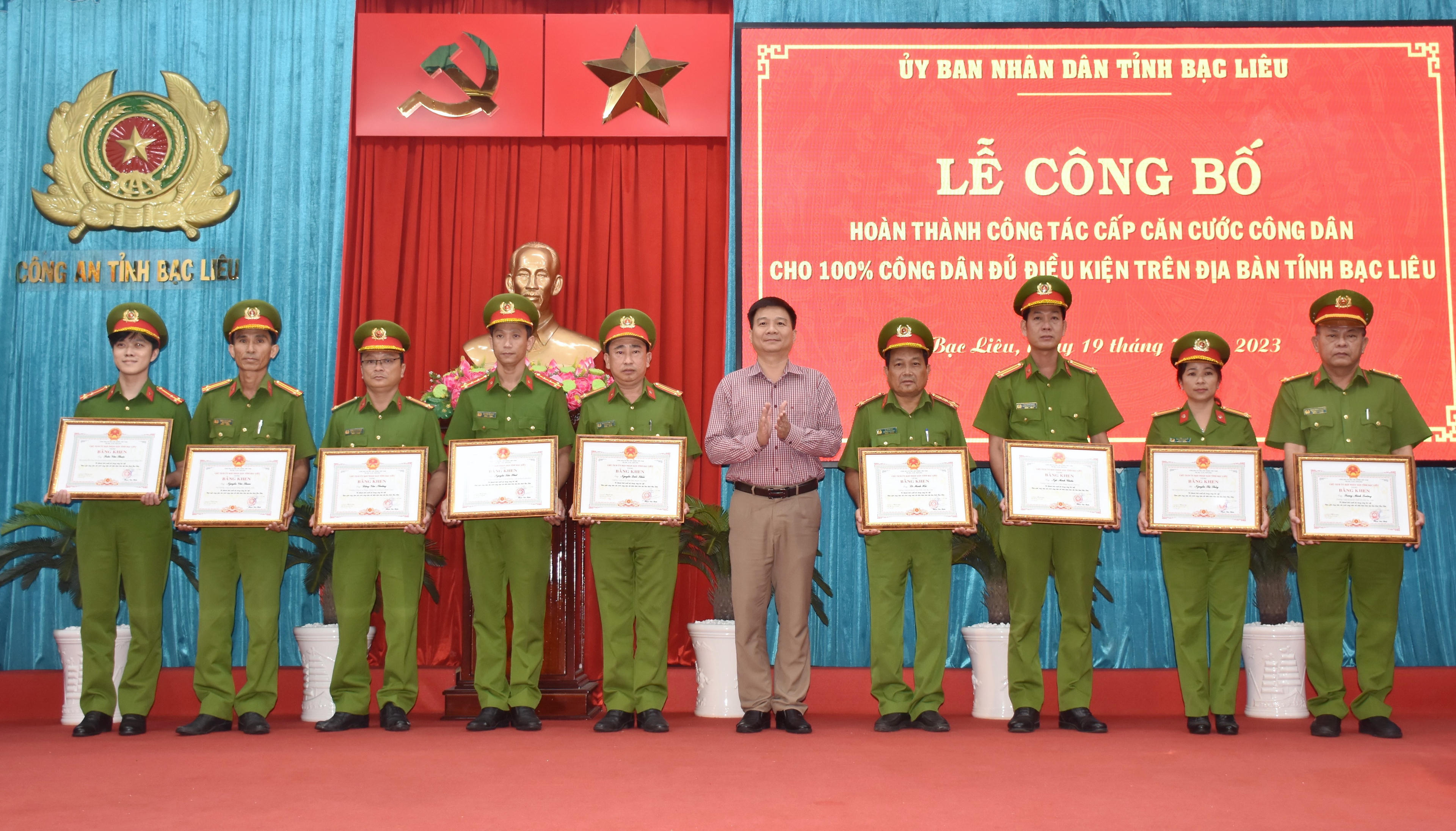 Cũng tại buổi lễ, Chủ tịch UBND tỉnh Bạc Liêu trao tặng Bằng khen cho 12 tập thể, 20 cá nhân đã có thành tích xuất sắc trong thực hiện cấp CCCD cho 100% công dân đủ điều kiện trên địa bàn.