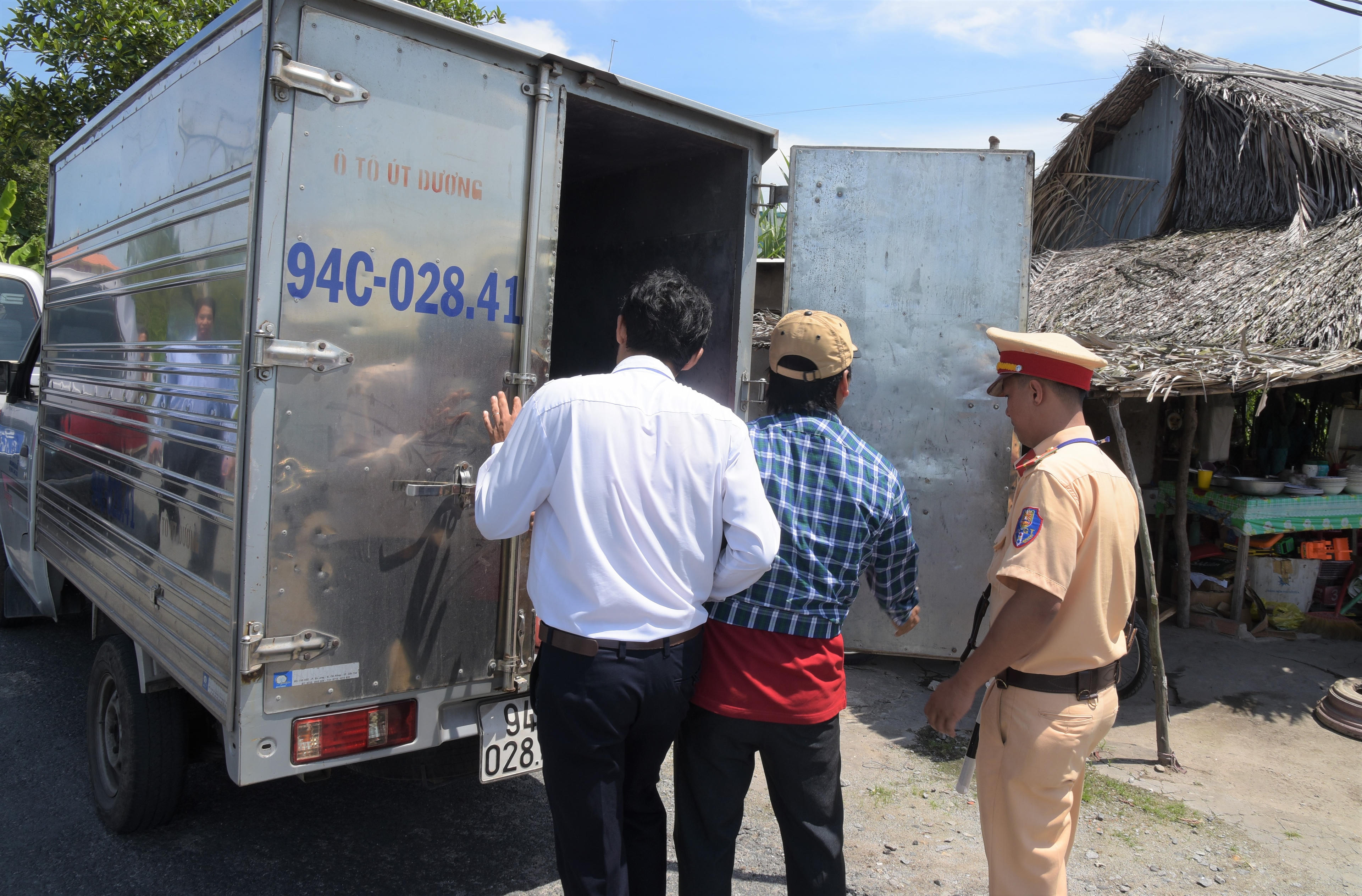 Xác định địa bàn các huyện Vĩnh Lợi, Hồng Dân và Phước Long là đường lưu thông chủ yếu của các phương tiện vận chuyển heo nhập tỉnh, ngày 28/5, Chủ tịch UBND tỉnh ông Dương Thành Trung cùng đoàn công tác liên ngành đã tiến hành kiểm tra các trạm kiểm dịch động vật trong công tác chốt chặn, kiểm tra phương tiện vận chuyển heo nhập tỉnh.