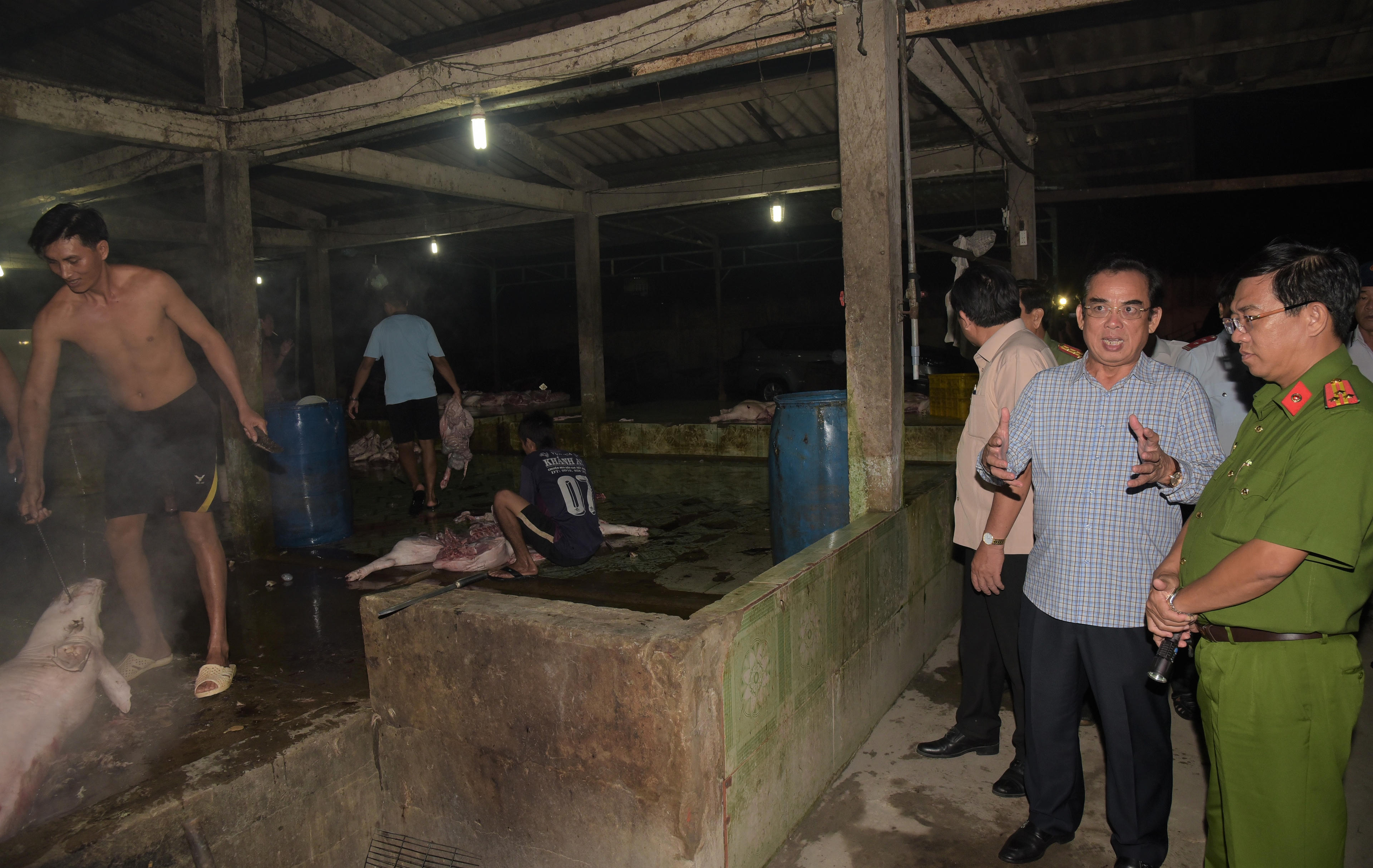 Trước đó, rạng sáng ngày 28/5, Chủ tịch UBND Dương Thành Trung đã trực tiếp đến kiểm tra tại các lò giết mổ heo trên địa bàn tỉnh. Tại các cơ sở giết mổ heo tập trung trên địa bàn TX Giá Rai và huyện Vĩnh Lợi, Chủ tịch Dương Thành Trung, cùng lãnh đạo mộ số sở, ngành, chính quyền địa phương đã kiểm tra, nắm bắt tình hình thực tế giết mổ heo, từ khâu vận chuyển, truy xuất nguồn gốc đến công tác an toàn vệ sinh và công tác phòng dịch.
