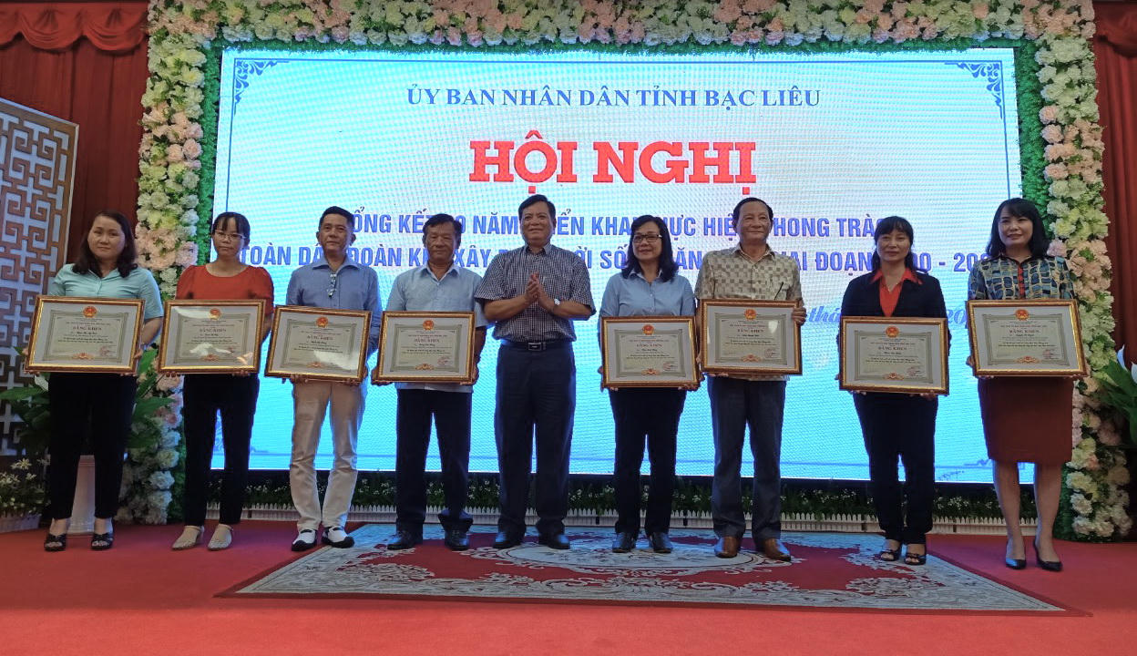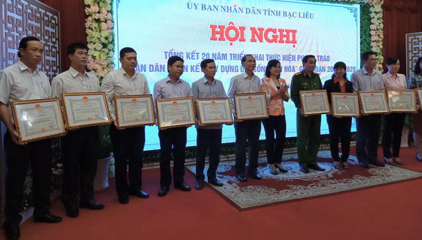 Nhân dịp này, Phó Chủ tịch UBND tỉnh, Trưởng ban Chỉ đạo phong trào “Toàn dân đoàn kết xây dựng đời sống văn hóa” tỉnh Bạc Liêu – Lâm Thị Sang và ông Nguyễn Văn Hòa – Trưởng Ban Dân vận Tỉnh ủy, Chủ tịch ủy ban MTTQ Việt Nam tỉnh, Phó ban Chỉ đạo phong trào “Toàn dân đoàn kết xây dựng đời sống văn hóa” tỉnh Bạc Liêu đã trao tặng Bằng khen cho 11 tập thể; 19 cá nhân đã có thành tích trong phong trào “Toàn dân đoàn kết xây dựng đời sống văn hóa” giai đoạn 2000 - 2020./.