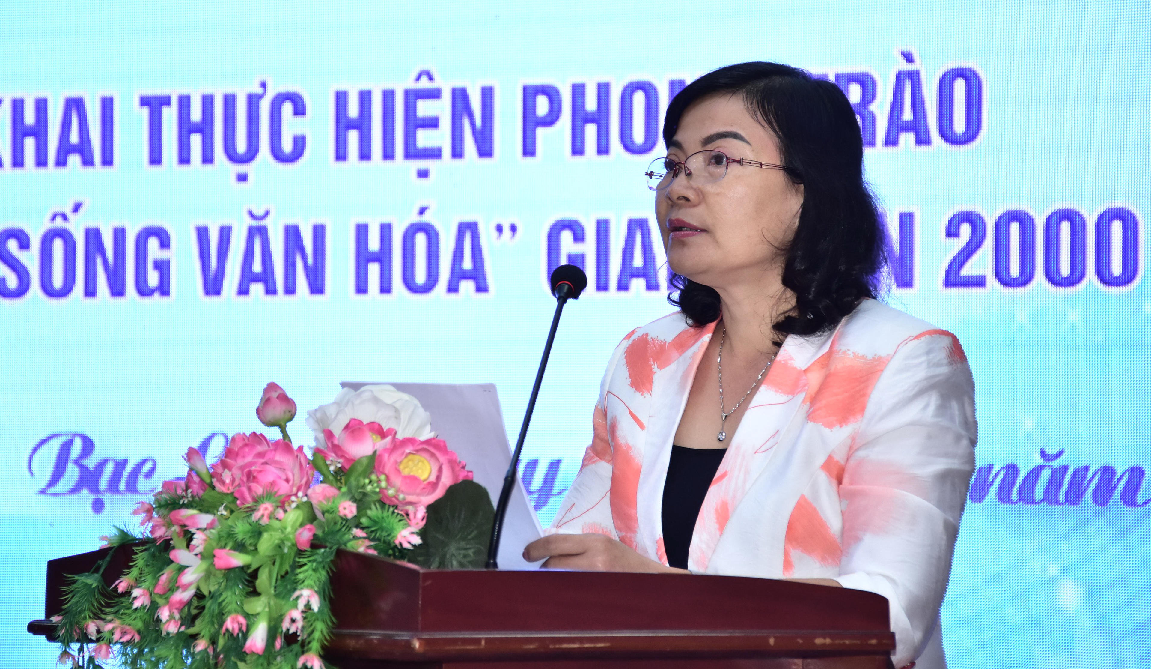 Phát biểu chỉ đạo Hội nghị, Phó Chủ tịch UBND tỉnh, Trưởng ban Chỉ đạo phong trào “Toàn dân đoàn kết xây dựng đời sống văn hóa” tỉnh Bạc Liêu – Lâm Thị Sang ghi nhận và đánh giá cao sự nỗ lực, cố gắng cùng những đóng góp quan trọng của các cấp, các ngành và toàn thể nhân dân thời gian qua.